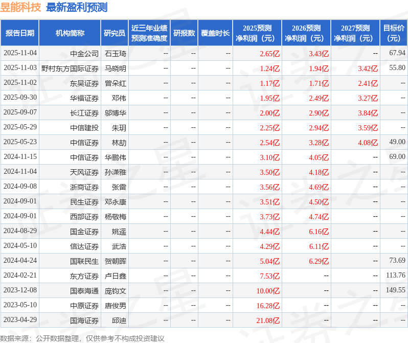 以下是详细的盈利预测信息: