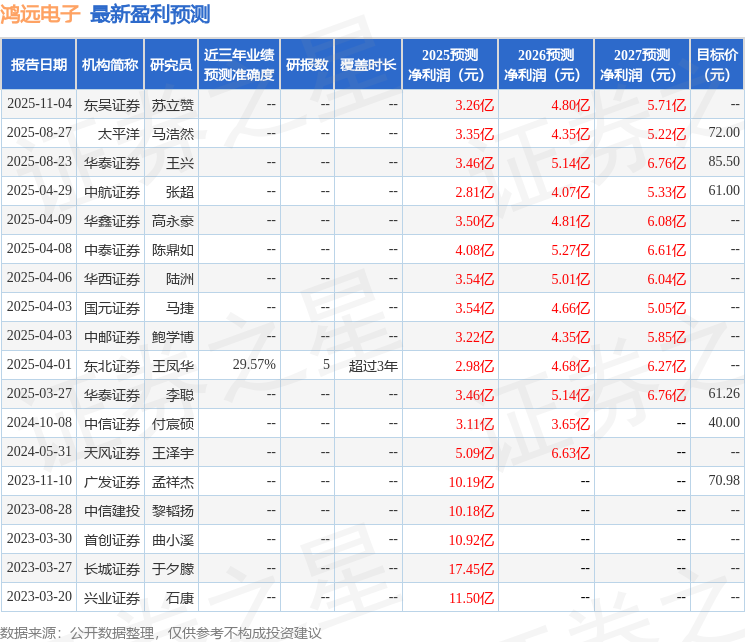 以下是详细的盈利预测信息: