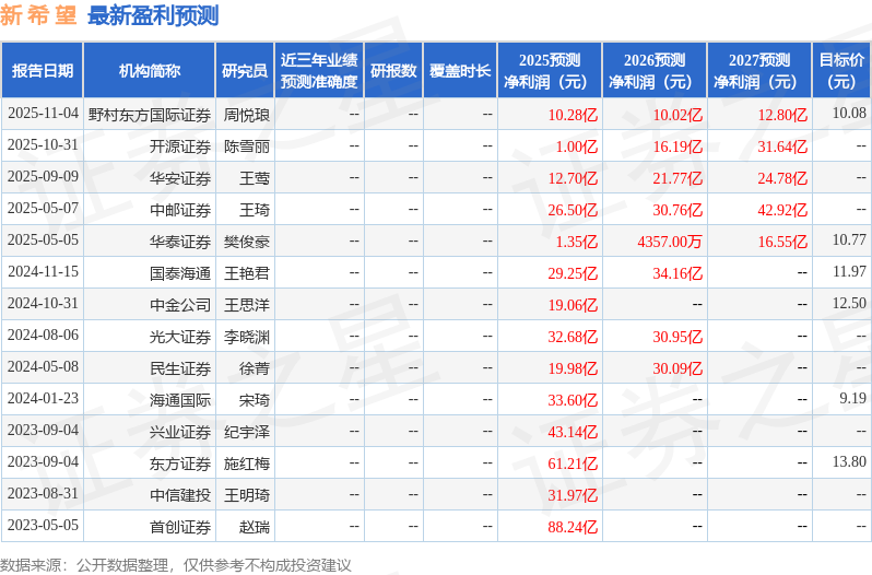证券之星消息,2025年11月11日新 希 望(000876)发布公告称公司于2025年11月4日召开分析师会议,国君海通王艳君 巩健、天风证券黄建霖 陈炼 周衍彤 陈思贝、长江自营彭仲、兴证自营冯一雪、高致投资李澍、南方基金刘葳洋、国信证券杜杨、招商证券施腾 王巍、开源证券陈雪丽 王高展、深圳玖稳资产郭灿锋、易方达张逸、广发证券钱浩、招商财富罗宗健、远望角投资包家昊、华夏基金黄皓、Capstone Capital王明昊、嘉实基金李远山、高腾国际张宜欣、国联基金邵思凝、华创证券陈鹏、新华基金王建辉、平安养老金浩枫参与。