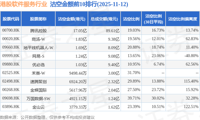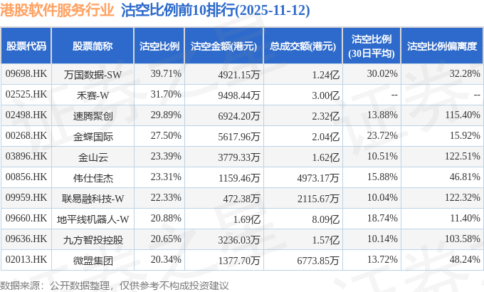 由于港股人民币柜台交易股票成交金额较小,沽空比例普遍偏高,为了避免干扰,已将人民币柜台交易股票从排行表格中剔除。