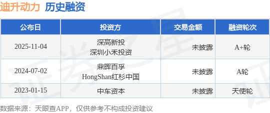证券之星消息,根据天眼查APP于11月4日公布的信息整理,南京迪升动力科技有限公司A+轮融资,融资额未披露,参与投资的机构包括深高新投,深圳小禾投资。