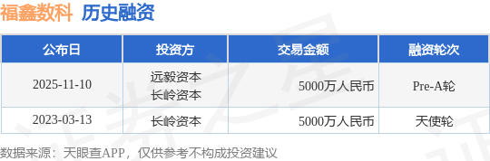 证券之星消息,根据天眼查APP于11月10日公布的信息整理,福鑫数科(杭州)人工智能有限公司Pre-A轮融资,融资额5000万人民币,参与投资的机构包括远毅资本,长岭资本。
