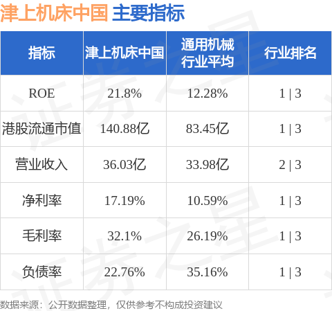 津上机床中国港股市值140.88亿港元,在通用机械行业中排名第1。主要指标见下表: