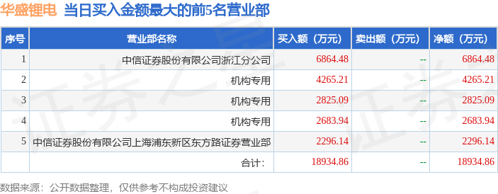 证券之星消息,沪深交易所2025年11月13日公布的交易公开信息显示,华盛锂电(688353)因有价格涨跌幅限制的日收盘价格涨幅达到15%的前五只证券登上龙虎榜。此次是近5个交易日内第3次上榜。