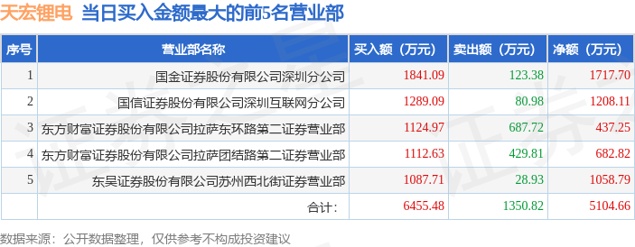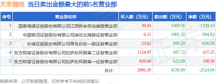证券之星消息,沪深交易所2025年11月13日公布的交易公开信息显示,天宏锂电(920252)因当日换手率达到20%的前5只股票,当日收盘价涨幅达到20%的前5只股票登上龙虎榜。此次是近5个交易日内第1次上榜。