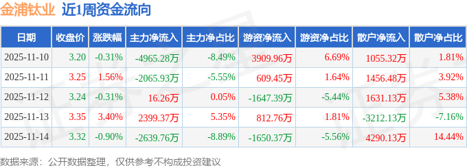 资金流向数据方面,本周金浦钛业主力资金合计净流出7255.34万元,游资资金合计净流入2034.42万元,散户资金合计净流入5220.92万元。本周资金流向一览见下表: