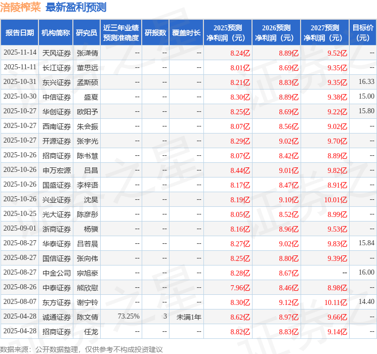证券之星消息,2025年11月17日涪陵榨菜(002507)发布公告称公司于2025年11月14日组织现场参观活动,开源证券张宇光 逢晓娟、国泰基金智健、长江证券陈硕旸、汇丰晋信晏建树 费馨涵 李文华、光大自营刘勇、招商基金邹俊之、鹏华基金范晶伟、东兴基金高坤、杉树资产吴志泰、兴银理财王毅成、国富人寿张歌参与。