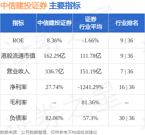 中信建投证券港股市值162.29亿港元,在证券行业中排名第9。主要指标见下表: