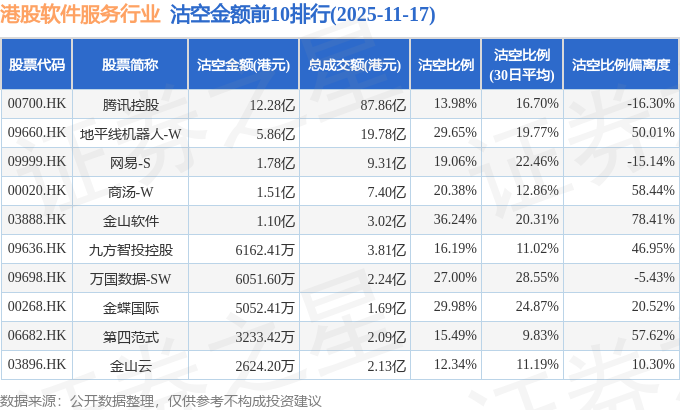 由于港股人民币柜台交易股票成交金额较小,沽空比例普遍偏高,为了避免干扰,已将人民币柜台交易股票从排行表格中剔除。