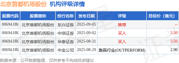 截至2025年11月17日收盘,北京首都机场股份(00694.HK)报收于2.94港元,下跌1.34%,成交量645.8万股,成交额1886.85万港元。投行对该股的评级以买入为主,近90天内共有2家投行给出买入评级,近90天的目标均价为3.3港元。东兴证券最新一份研报给予北京首都机场股份推荐评级。