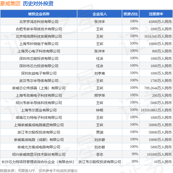 证券之星消息,根据天眼查APP显示,豪威集团(603501.SH)新增一起对外投资事件,被投资公司为重庆创元智航科技有限公司,法定代表人王洲,投资占比为24%。该公司从事软件和信息技术服务业,注册资本为10000万人民币。目前,豪威集团共存在对外投资41项,投资占比前20的项目见下表: