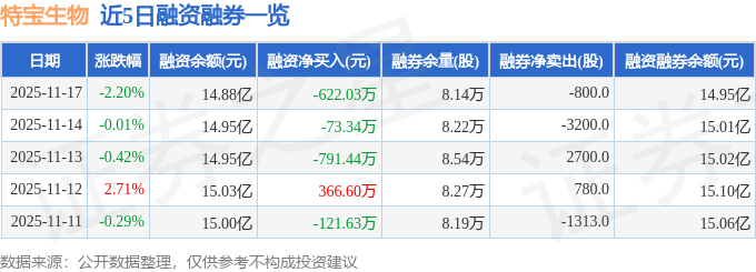 特宝生物融资融券信息显示,融资方面,当日融资买入632.41万元,融资偿还1254.44万元,融资净偿还622.03万元。融券方面,融券卖出1200.0股,融券偿还2000.0股,融券余量8.14万股,融券余额619.96万元。融资融券余额14.95亿元。