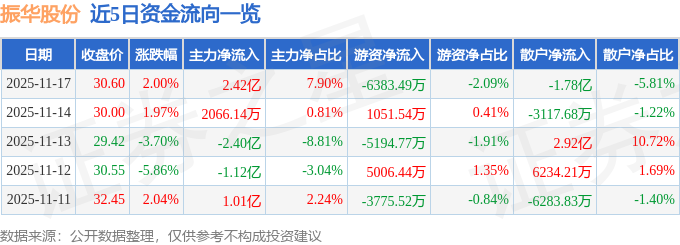 11月17日的资金流向数据方面,主力资金净流入2.42亿元,占总成交额7.9%,游资资金净流出6383.49万元,占总成交额2.09%,散户资金净流出1.78亿元,占总成交额5.81%。