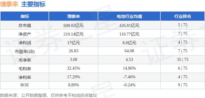 璞泰来主要指标及行业内排名如下: