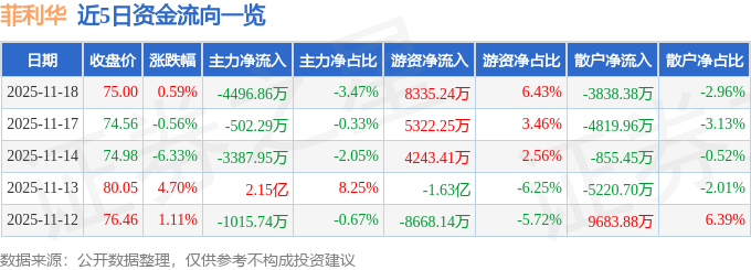 11月18日的资金流向数据方面,主力资金净流出4496.86万元,占总成交额3.47%,游资资金净流入8335.24万元,占总成交额6.43%,散户资金净流出3838.38万元,占总成交额2.96%。
