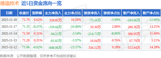 11月18日的资金流向数据方面,主力资金净流入318.82万元,占总成交额16.56%,游资资金净流出75.16万元,占总成交额3.9%,散户资金净流出243.66万元,占总成交额12.66%。