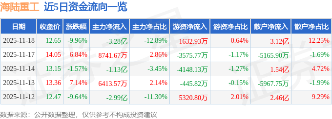11月18日的资金流向数据方面,主力资金净流出3.28亿元,占总成交额12.89%,游资资金净流入1632.93万元,占总成交额0.64%,散户资金净流入3.12亿元,占总成交额12.25%。
