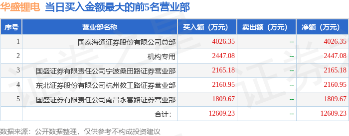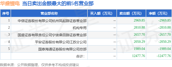 证券之星消息,沪深交易所2025年11月27日公布的交易公开信息显示,华盛锂电(688353)因有价格涨跌幅限制的日收盘价格涨幅达到15%的前五只证券登上龙虎榜。此次是近5个交易日内第1次上榜。
