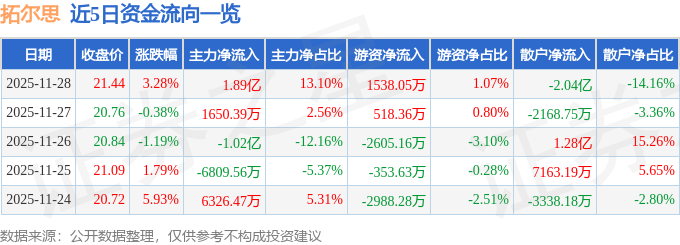 11月28日的资金流向数据方面,主力资金净流入1.89亿元,占总成交额13.1%,游资资金净流入1538.05万元,占总成交额1.07%,散户资金净流出2.04亿元,占总成交额14.16%。