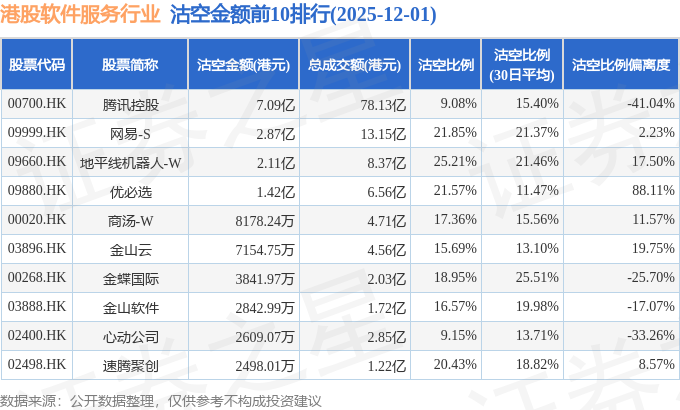 从沽空金额来看,腾讯控股、网易-S、地平线机器人-W沽空金额位居行业前三,分别为7.09亿港元、2.87亿港元、2.11亿港元。