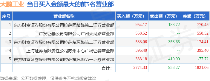 证券之星消息,沪深交易所2025年12月2日公布的交易公开信息显示,大鹏工业(920091)因当日换手率达到20%的前5只股票登上龙虎榜。此次是近5个交易日内第5次上榜。