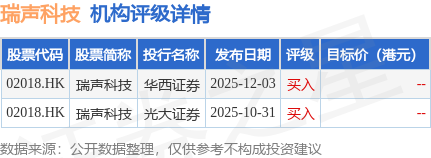 投行对该股的评级以买入为主,近90天内共有2家投行给出买入评级。华西证券最新一份研报给予瑞声科技买入评级。