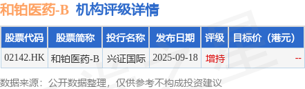 截至2025年12月8日收盘,和铂医药-B(02142.HK)报收于13.57港元,下跌4.44%,成交量738.39万股,成交额9845.29万港元。投行对该股的评级以增持为主,近90天内共有1家投行给出增持评级。兴证国际最新一份研报给予和铂医药-B增持评级。