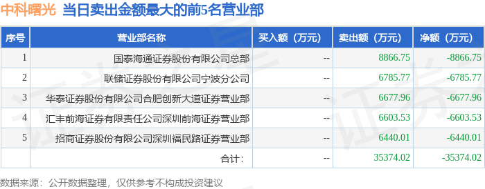 证券之星消息,沪深交易所2025年12月10日公布的交易公开信息显示,中科曙光(603019)因有价格涨跌幅限制的日收盘价格跌幅偏离值达到7%的前五只证券登上龙虎榜。此次是近5个交易日内第1次上榜。