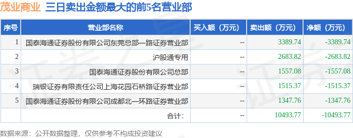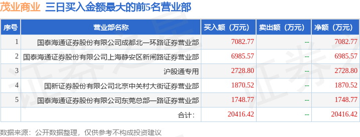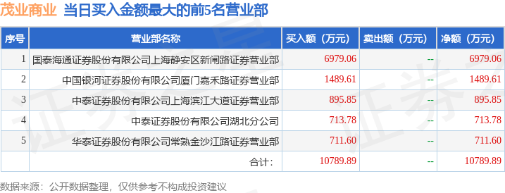 证券之星消息,沪深交易所2025年12月10日公布的交易公开信息显示,茂业商业(600828)因有价格涨跌幅限制的日收盘价格涨幅偏离值达到7%的前五只证券,非ST、*ST和S证券连续三个交易日内收盘价格涨幅偏离值累计达到20%的证券登上龙虎榜。此次是近5个交易日内第1次上榜。