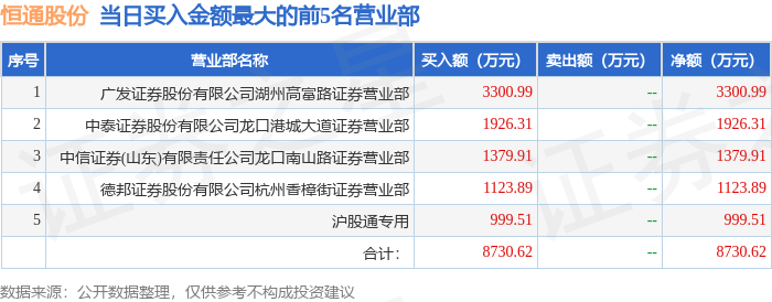 证券小知识:龙虎榜是交易所披露的竞价交易公开信息,现身龙虎榜的个股都是当日最为活跃的个股,是投资者日常重点关注的数据。交易所公布当日买入金额和卖出金额前五名的席位,其中一些席位代表特殊意义,如机构专用席位是指基金专用席位、券商自营专用席位、社保专用席位、券商理财专用席位、保险机构专用席位、保险机构租用席位、QFII专用席位等机构投资者买卖证券的专用通道和席位。深股通专用、沪股通专用为北向资金的交易席位。从龙虎榜数据可以发现和研究机构、游资和散户的资金动向。一些营业部席位经常上榜,市场知名度较高,投资者整理代表散户、游资、量化等不同资金的营业部席位。
