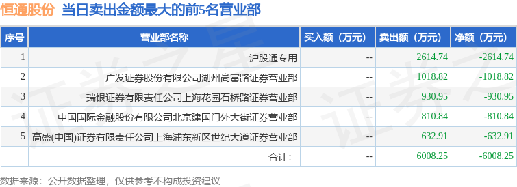 证券之星消息,沪深交易所2025年12月10日公布的交易公开信息显示,恒通股份(603223)因有价格涨跌幅限制的日收盘价格跌幅偏离值达到7%的前五只证券登上龙虎榜。此次是近5个交易日内第1次上榜。