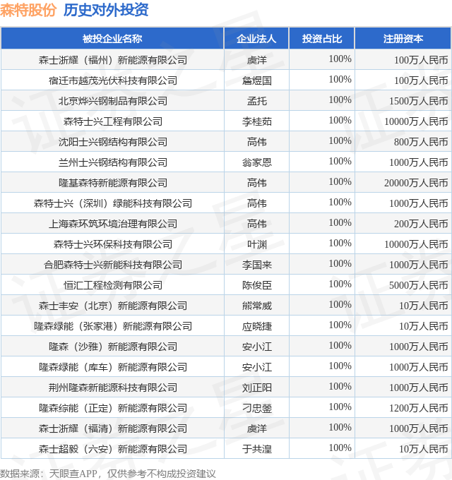 证券之星消息,根据天眼查APP显示,森特股份(603098.SH)新增一起对外投资事件,被投资公司为森士浙耀(福州)新能源有限公司,法定代表人虞洋,投资占比为100%。该公司从事电力、热力生产和供应业,注册资本为100万人民币。目前,森特股份共存在对外投资41项,投资占比前20的项目见下表: