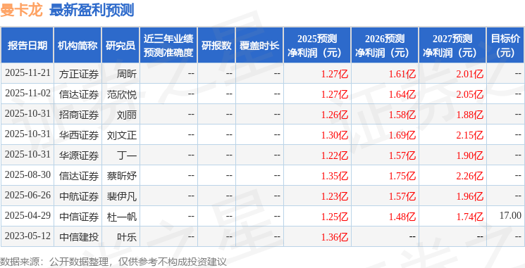曼卡龙2025年三季报显示,前三季度公司主营收入21.64亿元,同比上升29.3%;归母净利润1.02亿元,同比上升32.58%;扣非净利润8971.03万元,同比上升26.47%;其中2025年第三季度,公司单季度主营收入6.08亿元,同比上升36.22%;单季度归母净利润2549.36万元,同比上升25.33%;单季度扣非净利润2235.13万元,同比上升20.83%;负债率15.36%,投资收益363.52万元,财务费用-416.19万元,毛利率14.09%。