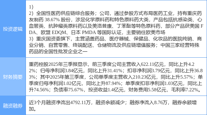 该股为重庆国企改革,化学原料药,医药概念热股。