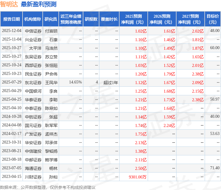 智明达2025年三季报显示,前三季度公司主营收入5.12亿元,同比上升145.16%;归母净利润8198.71万元,同比上升995.37%;扣非净利润7778.56万元,同比上升661.58%;其中2025年第三季度,公司单季度主营收入2.17亿元,同比上升340.71%;单季度归母净利润4368.91万元,同比上升502.28%;单季度扣非净利润4210.32万元,同比上升434.75%;负债率35.79%,投资收益34.94万元,财务费用196.74万元,毛利率47.98%。