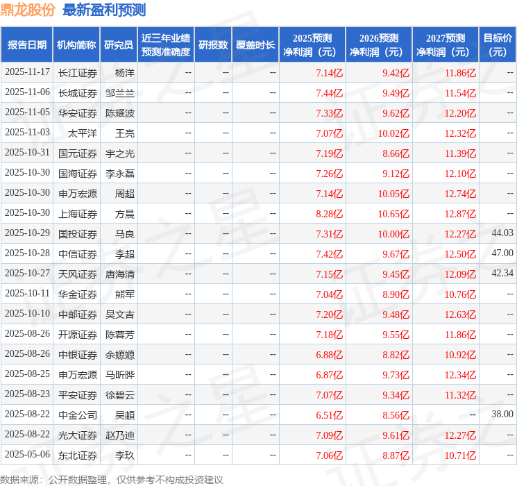 以下是详细的盈利预测信息: