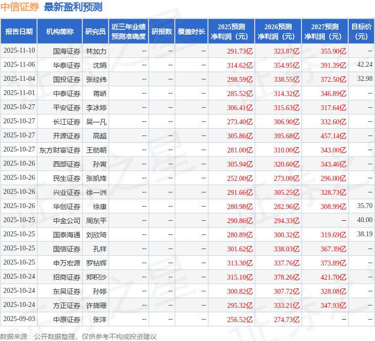 中信证券2025年三季报显示,前三季度公司主营收入558.15亿元,同比上升32.7%;归母净利润231.59亿元,同比上升37.86%;扣非净利润230.0亿元,同比上升37.41%;其中2025年第三季度,公司单季度主营收入227.75亿元,同比上升55.71%;单季度归母净利润94.4亿元,同比上升51.54%;单季度扣非净利润94.29亿元,同比上升51.81%;负债率84.17%,投资收益328.38亿元。