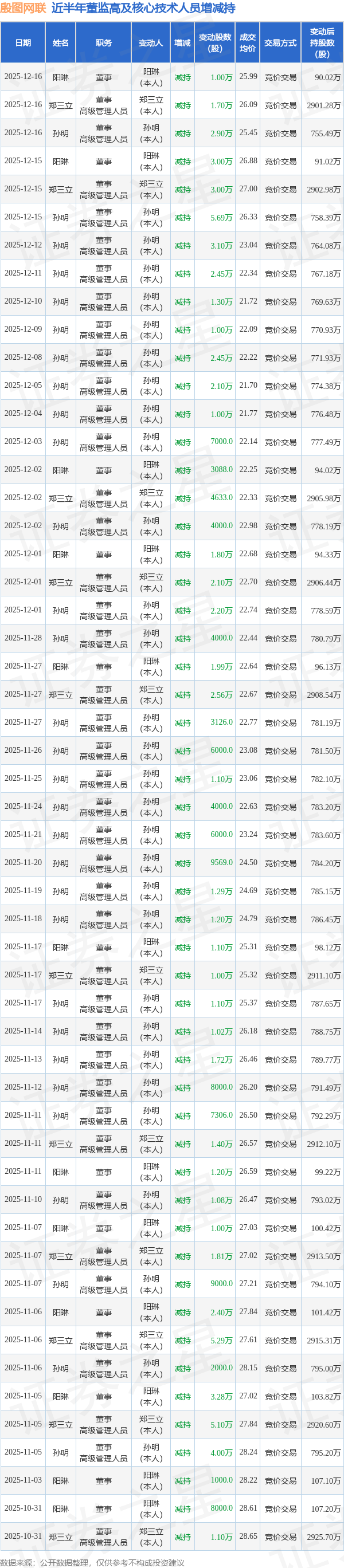 殷图网联近半年内的董监高及核心技术人员增减持详情如下: