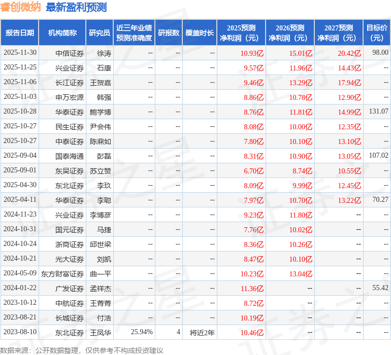 以下是详细的盈利预测信息:
