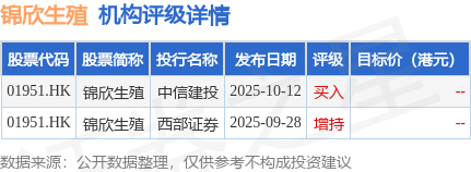 截至2025年12月17日收盘,锦欣生殖(01951.HK)报收于2.53港元,上涨3.27%,成交量1687.0万股,成交额4203.65万港元。投行对该股的评级以增持为主,近90天内共有1家投行给出增持评级。中信建投最新一份研报给予锦欣生殖买入评级。