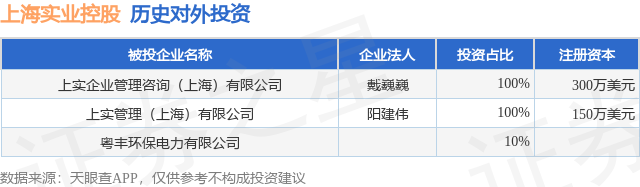 通过天眼查大数据分析,上海实业控股有限公司共对外投资了2家企业,参与招投标项目1次。