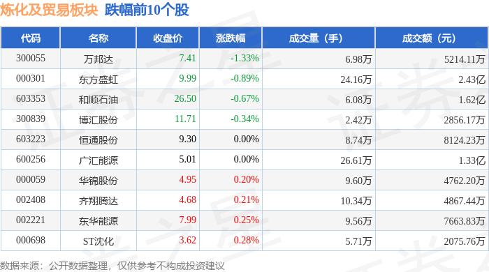从资金流向上来看,当日炼化及贸易板块主力资金净流入2507.08万元,游资资金净流出8322.76万元,散户资金净流入5815.68万元。炼化及贸易板块个股资金流向见下表: