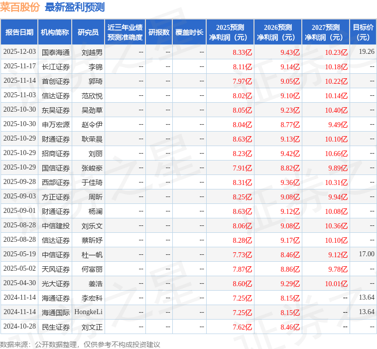 以下是详细的盈利预测信息: