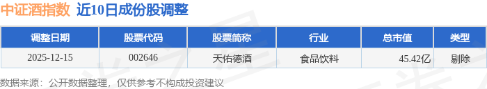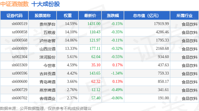 近10日内中证酒(399987)指数成份股做了调整,剔除了1只股票。