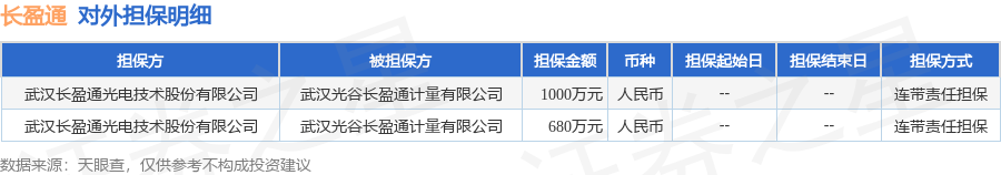 长盈通12月17日披露2笔对外担保,被担保方为武汉光谷长盈通计量有限公司。对外担保明细如下表:
