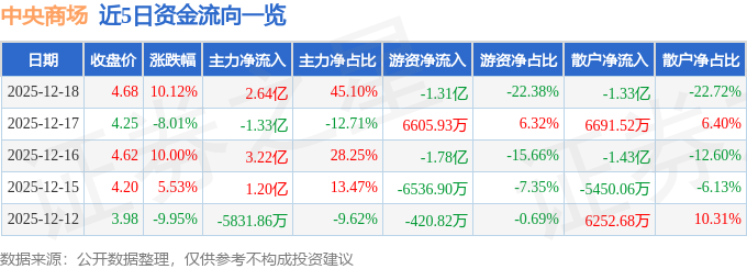 12月18日的资金流向数据方面,主力资金净流入2.64亿元,占总成交额45.1%,游资资金净流出1.31亿元,占总成交额22.38%,散户资金净流出1.33亿元,占总成交额22.72%。