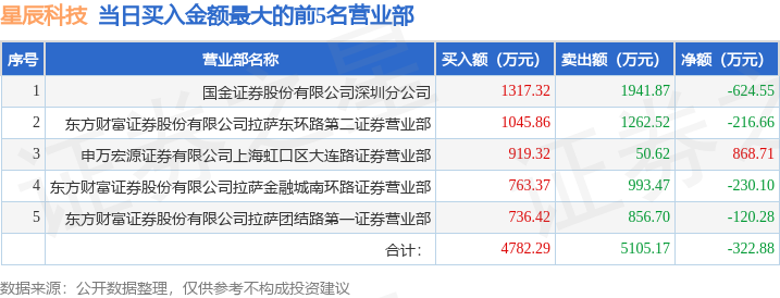 证券之星消息,沪深交易所2025年12月22日公布的交易公开信息显示,星辰科技(920885)因当日换手率达到20%的前5只股票,北交所股票最近3个有成交的交易日以内收盘价涨跌幅偏离值累计达到+40%(-40%)登上龙虎榜。此次是近5个交易日内第3次上榜。