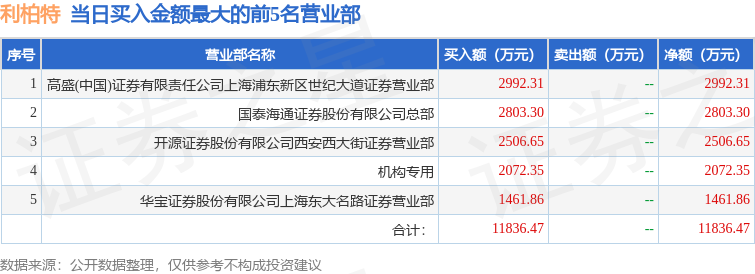 从龙虎榜公布的当日买卖数据来看,机构合计净买入2072.35万元。