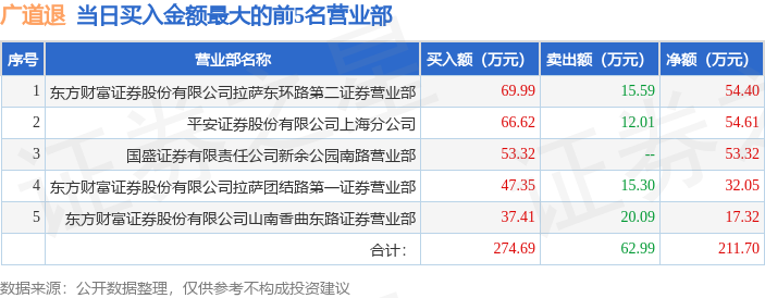 证券小知识:龙虎榜是交易所披露的竞价交易公开信息,现身龙虎榜的个股都是当日最为活跃的个股,是投资者日常重点关注的数据。交易所公布当日买入金额和卖出金额前五名的席位,其中一些席位代表特殊意义,如机构专用席位是指基金专用席位、券商自营专用席位、社保专用席位、券商理财专用席位、保险机构专用席位、保险机构租用席位、QFII专用席位等机构投资者买卖证券的专用通道和席位。深股通专用、沪股通专用为北向资金的交易席位。从龙虎榜数据可以发现和研究机构、游资和散户的资金动向。一些营业部席位经常上榜,市场知名度较高,投资者整理代表散户、游资、量化等不同资金的营业部席位。