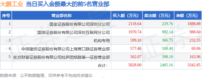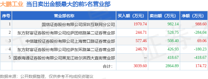 证券之星消息,沪深交易所2025年12月23日公布的交易公开信息显示,大鹏工业(920091)因当日换手率达到20%的前5只股票登上龙虎榜。此次是近5个交易日内第5次上榜。